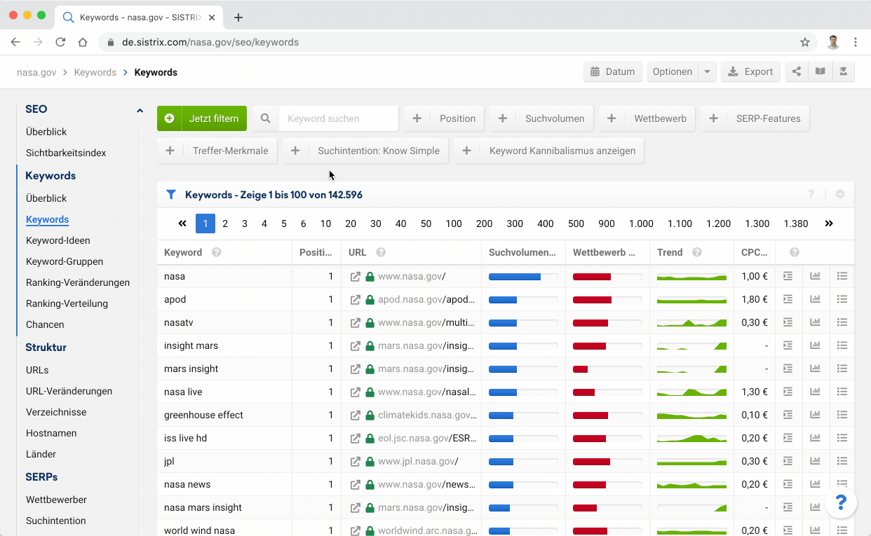 In SISTRIX hast du Zugriff auf Daten von über 100 Millionen Domains und Milliarden Keywords. Mit der Keyword- und Domain-Vorschau wird deine tägliche Arbeit jetzt noch schneller und effizienter.