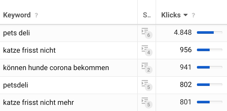 Die Standardsortierung der Keyword-Tabelle ist nun nach der Anzahl organischer Klicks je Monat. So siehst du die Haupttrafficbringer jeder beliebigen Webseite auf Anhieb ganz oben in der Auflistung.