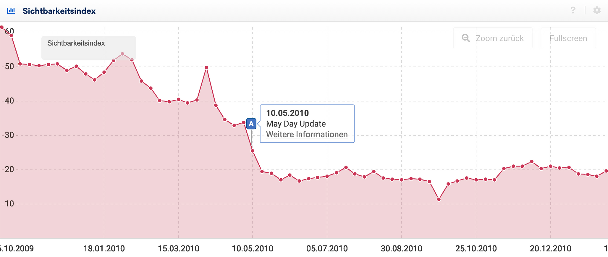 Taucht eine Website, in Folge des May Day Updates, nicht mehr zu Long-Tail-Suchanfragen in den Suchergebnissen auf, ist das für den Webmaster ein spürbarer Traffic- und Umsatzverlust.