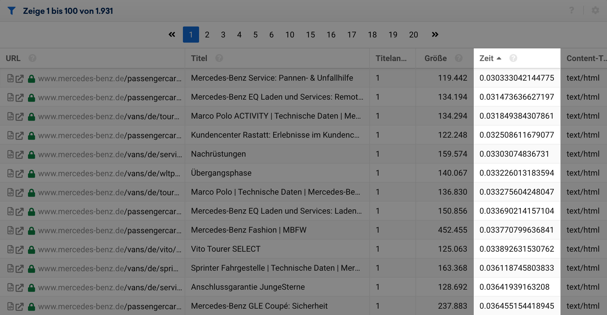 Das SISTRIX Projekt-Tool bietet hier Hilfestellung in Form einer automatisierten OnPage-Analyse Deiner Websites und zeigt alle SEO-relevanten Fehler auf. Auch lässt sich die Ladezeit einzelner URLs genau bestimmen.