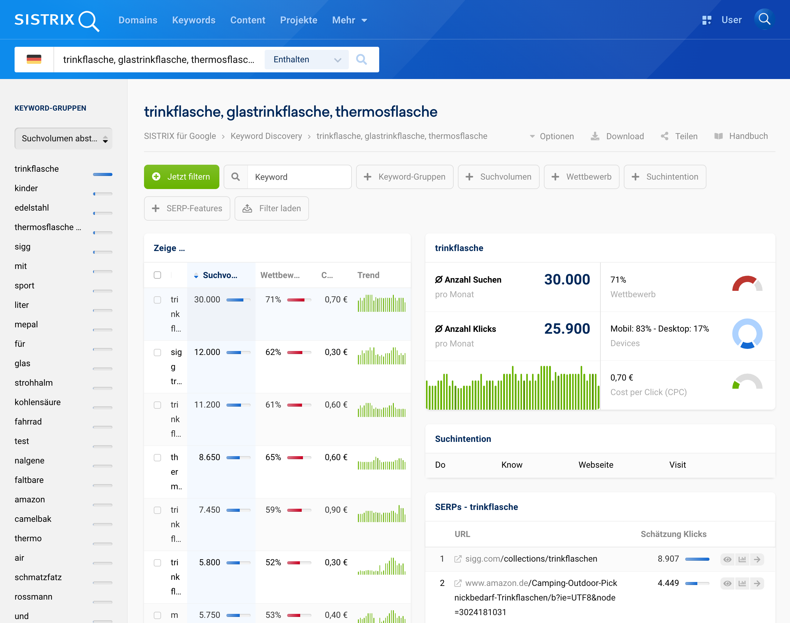 - Keyword Discovery: Mit diesem Tool kannst du relevante Keywords mit hohem Potenzial identifizieren, um deine Inhalte optimal auf die Suchanfragen deiner Zielgruppe auszurichten.