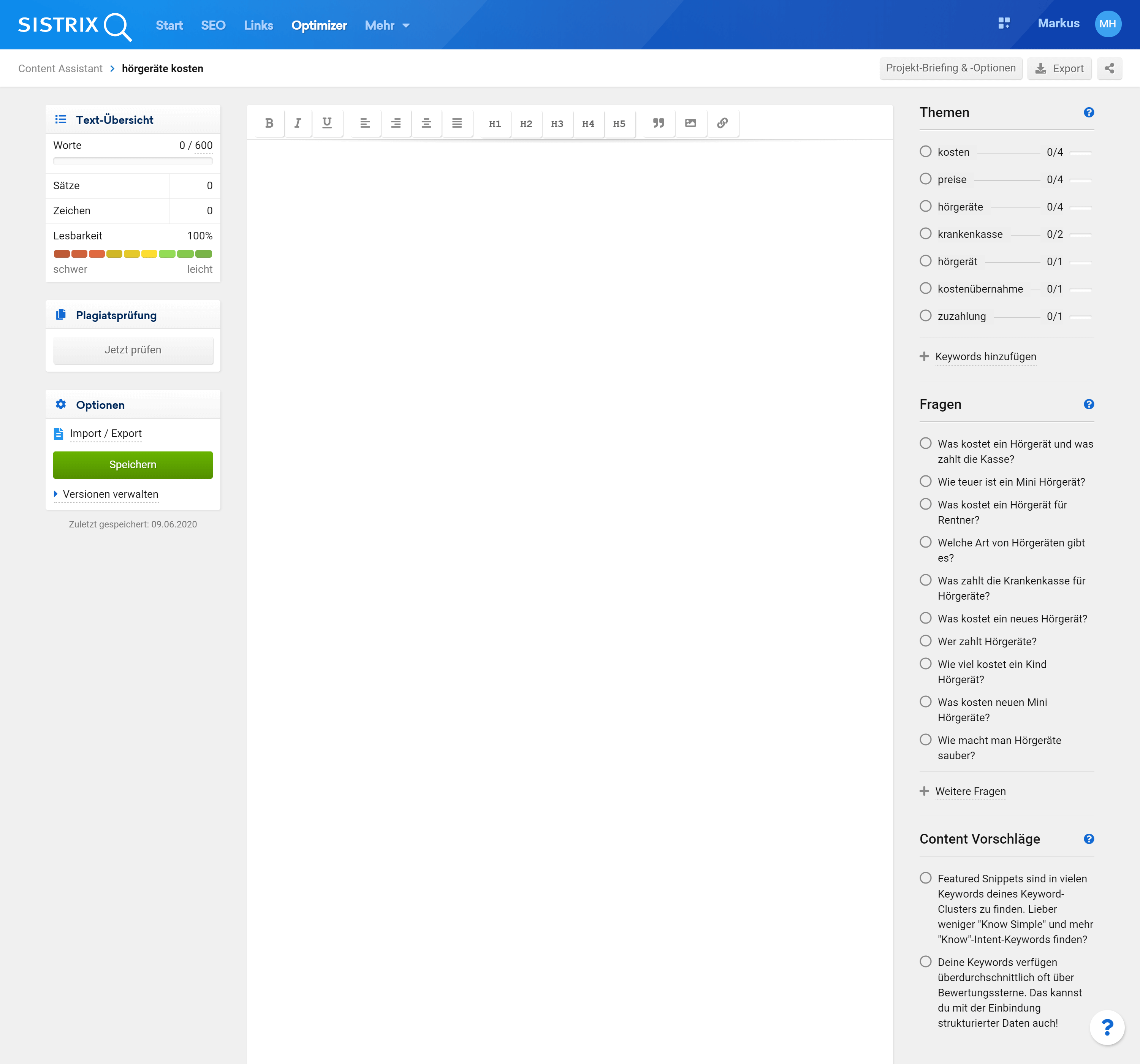 Wichtig ist dabei, dass man die Empfehlungen nicht sklavisch beachtet. Alles, was vom Content Assistant und vielen anderen Tools ausgegeben wird, basiert nicht auf einer menschlichen Analyse, sondern nur auf Algorithmen. Wenn als Frage also z. B. „Was kostet ein Hörgerät von Audibene“ ausgegeben wird, bedeutet das natürlich nicht, dass diese Frage auch zwangsweise im Content beantwortet werden muss.