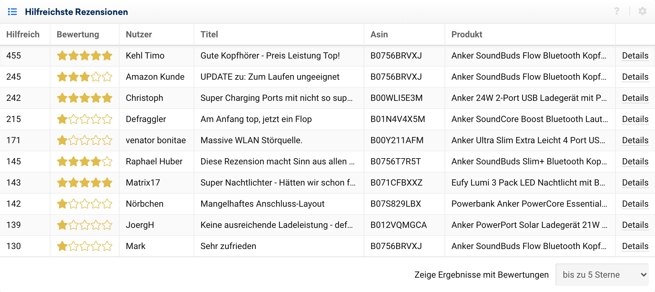 Nutze SISTRIX, um die relevanten Kundenrezensionen auf Anhieb zu entdecken. Rezensionen mit vielen “Hilfreich”-Markierungen durch andere Amazon-Nutzer zeigen dir, was die Amazon-Kunden interessiert.