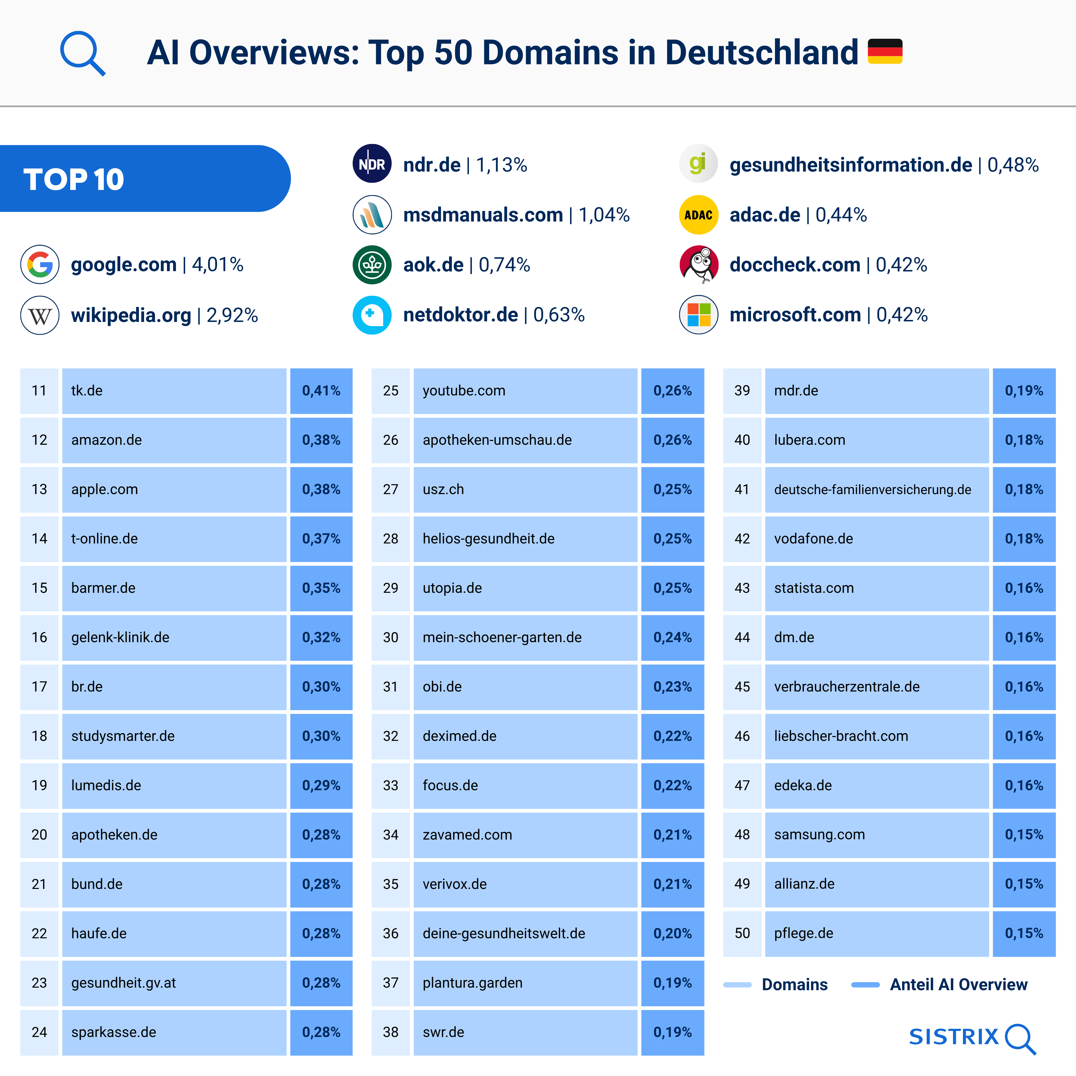 Aktuelle Verbreitung & Top Domains der AI Overviews