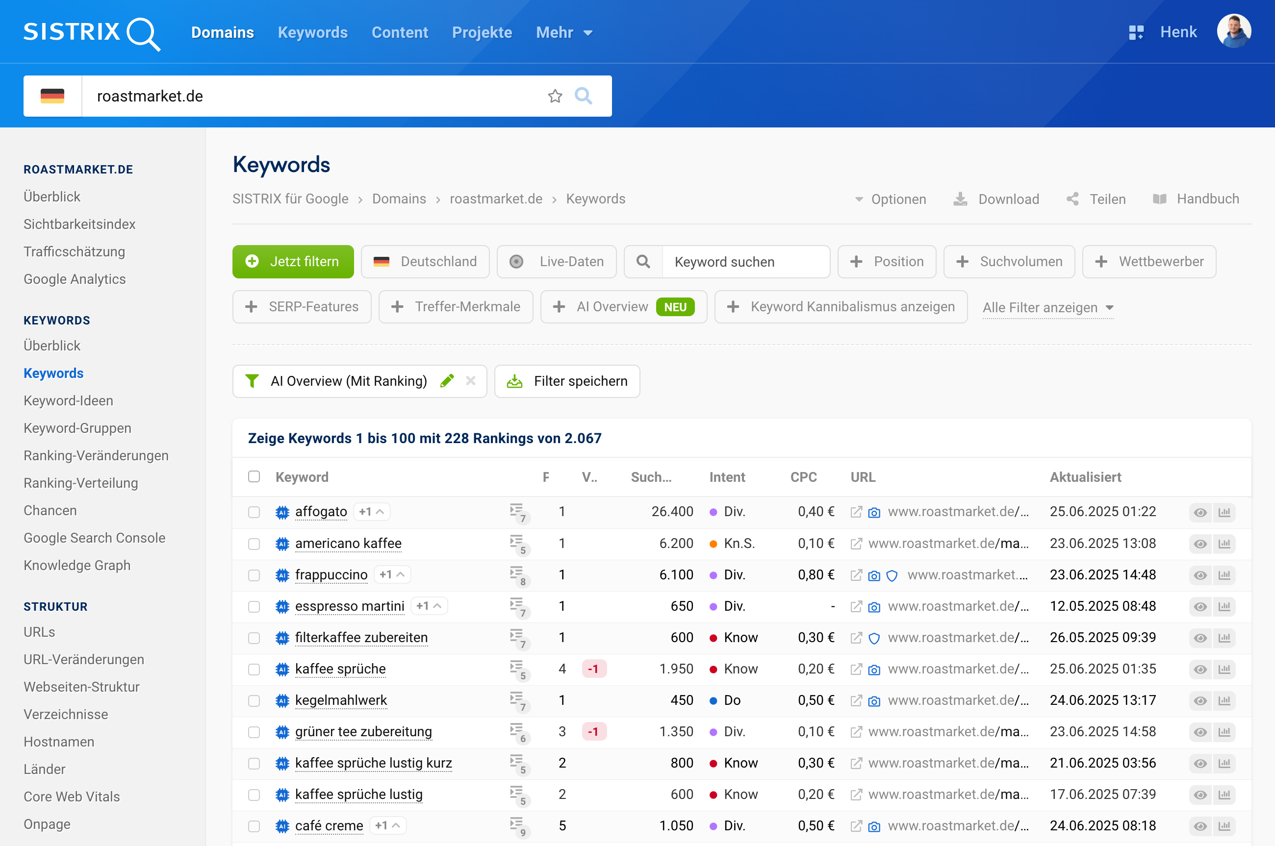 Die neuen Funktionen sind ab sofort in allen SISTRIX Accounts verfügbar und direkt nutzbar. Viel Spaß beim Ausprobieren!