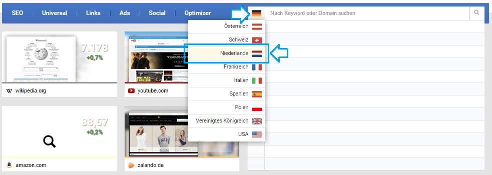 Alternativ kannst Du über nl.sistrix.com direkt in den niederländischen Index springen.