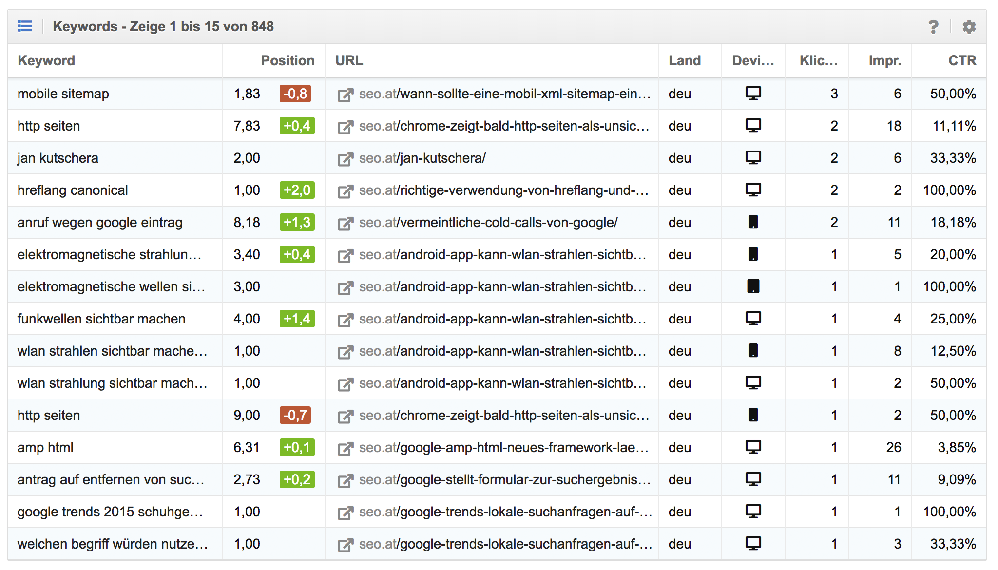 - zu welchem Keyword eine URL rankt,