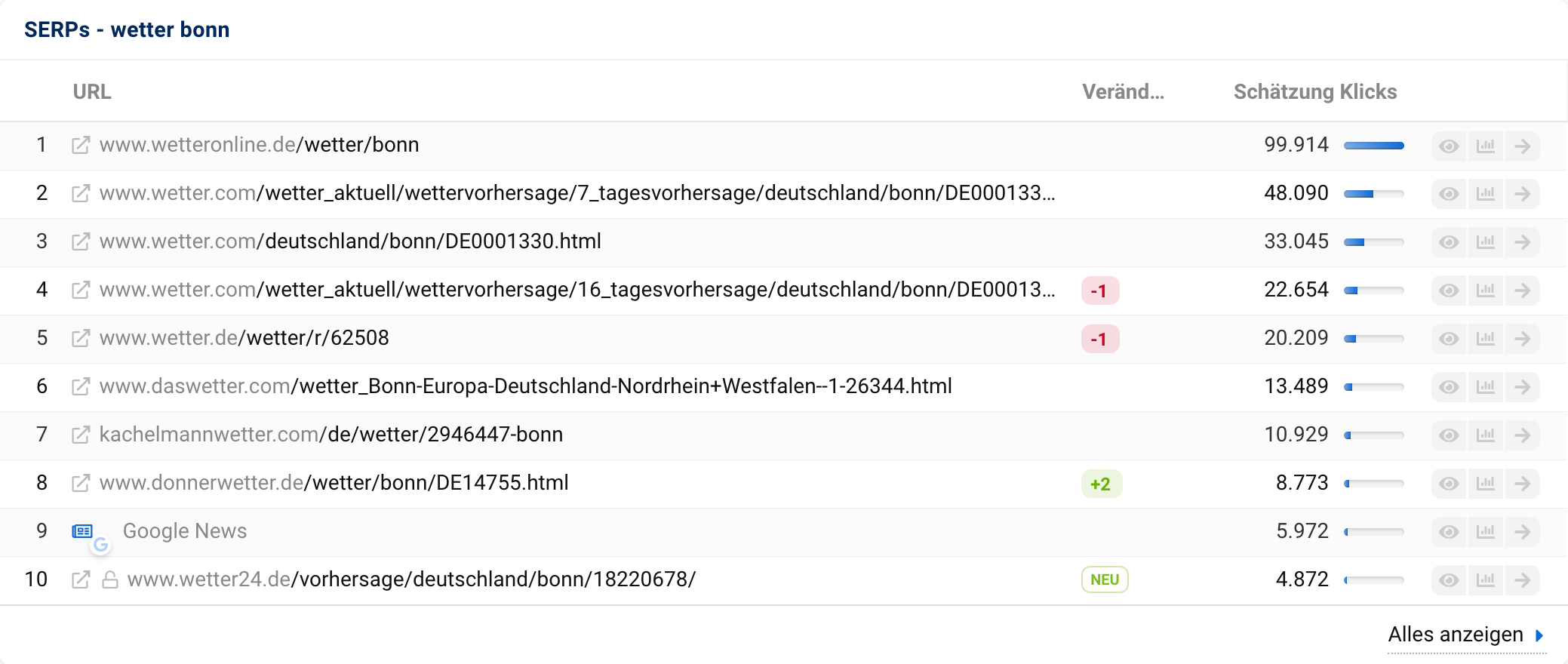 Von welchem Anteil an Klicks wir für einen spezifischen Treffer ausgehen, siehst du in dieser Tabelle in der Spalte „Schätzung Klicks“:
