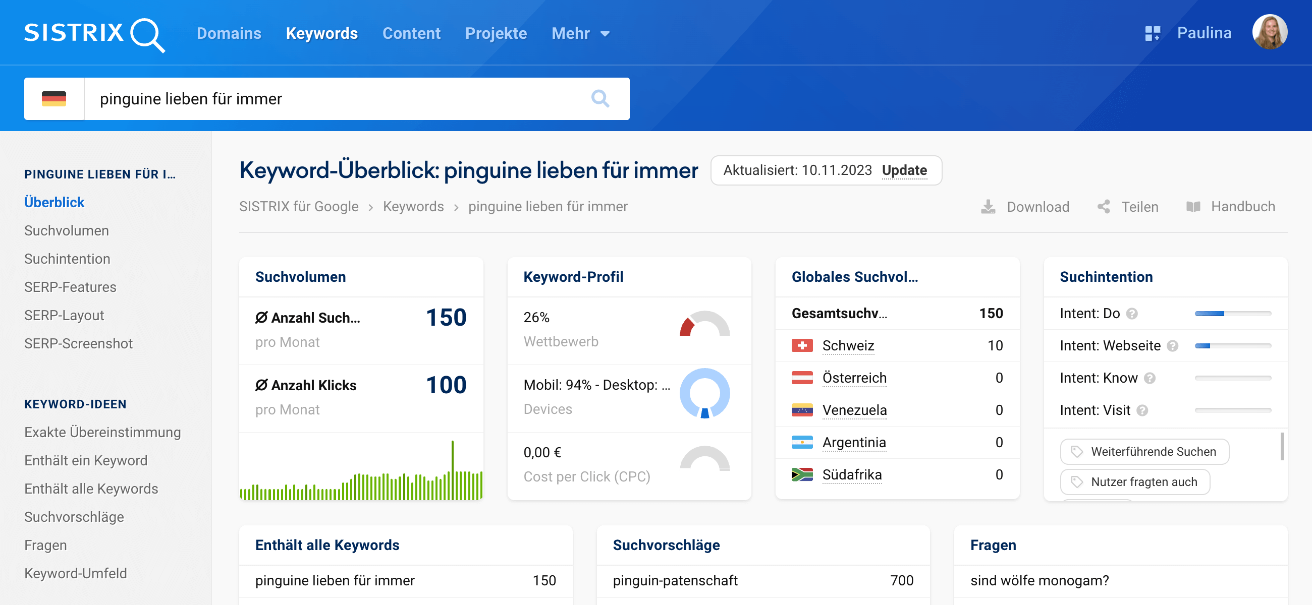 Die Daten sind dann nur in der Keyword-Ansicht zu sehen und tauchen nicht auf, wenn du dir zum Beispiel die Keywords und Rankings einer Domain oder URL anschaust.