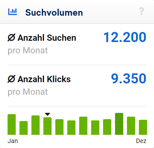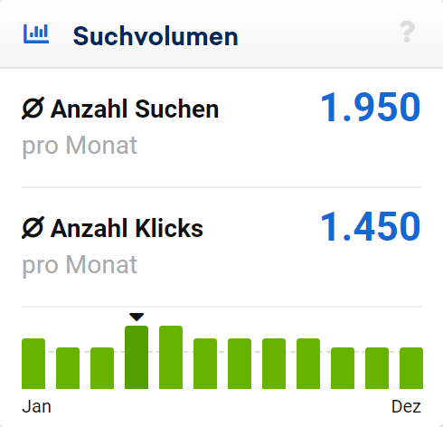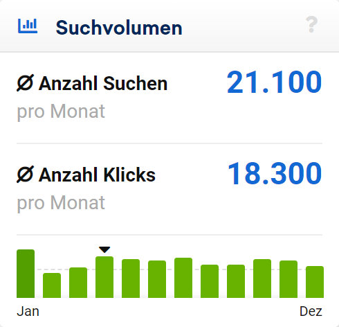 Zur Vollständigkeit hier die Ausgabe des Suchvolumens für das Keyword “sistrix” aus SISTRIX selber: ein exaktes Suchvolumen, keine Intervalle, keine Gruppen. Zusätzlich zeigen wir direkt an, wie viele dieser Suchen auch wirklich auf organischen Suchtreffern landen: