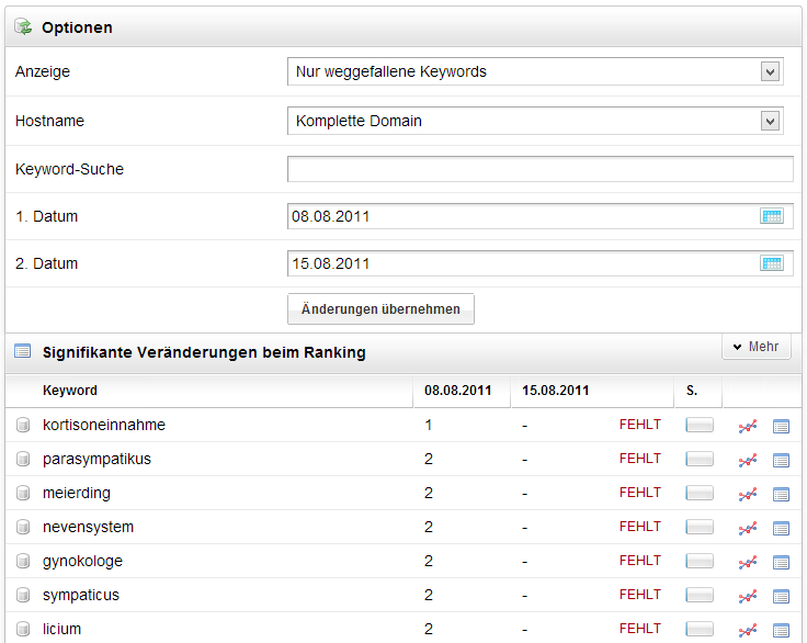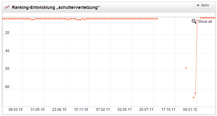Ein Absturz wichtiger und wertvoller Rankings in diesem Zeitraum ist ebenfalls ein Indiz dafür, dass die Webseite von der Algorithmus-Änderung “Panda” betroffen ist: