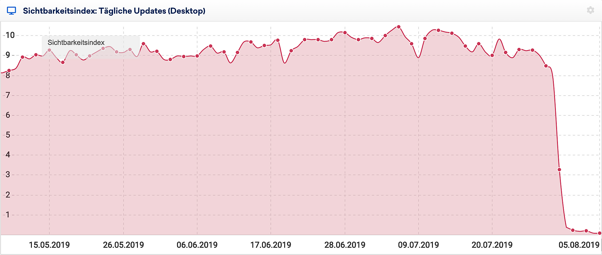 Liegt der Absturz weniger als 30 Tage zurück, kannst du sogar noch genauere Aussagen zum betreffenden Datum in unserem täglichen Sichtbarkeitsindex-Verlauf erkennen: