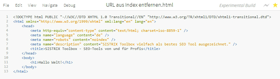Lösungsweg 1: Der Wert NOINDEX des Meta-Elements Robots