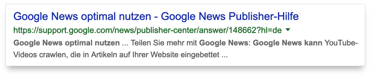 Die Länge des Titles sollte 70 Zeichen nicht überschreiten. Der Title sollte so formuliert werden, dass er die Suchenden zum Klick auf dein Ergebnis animiert. Er gilt als einer von 200 Rankingfaktoren bei Google.