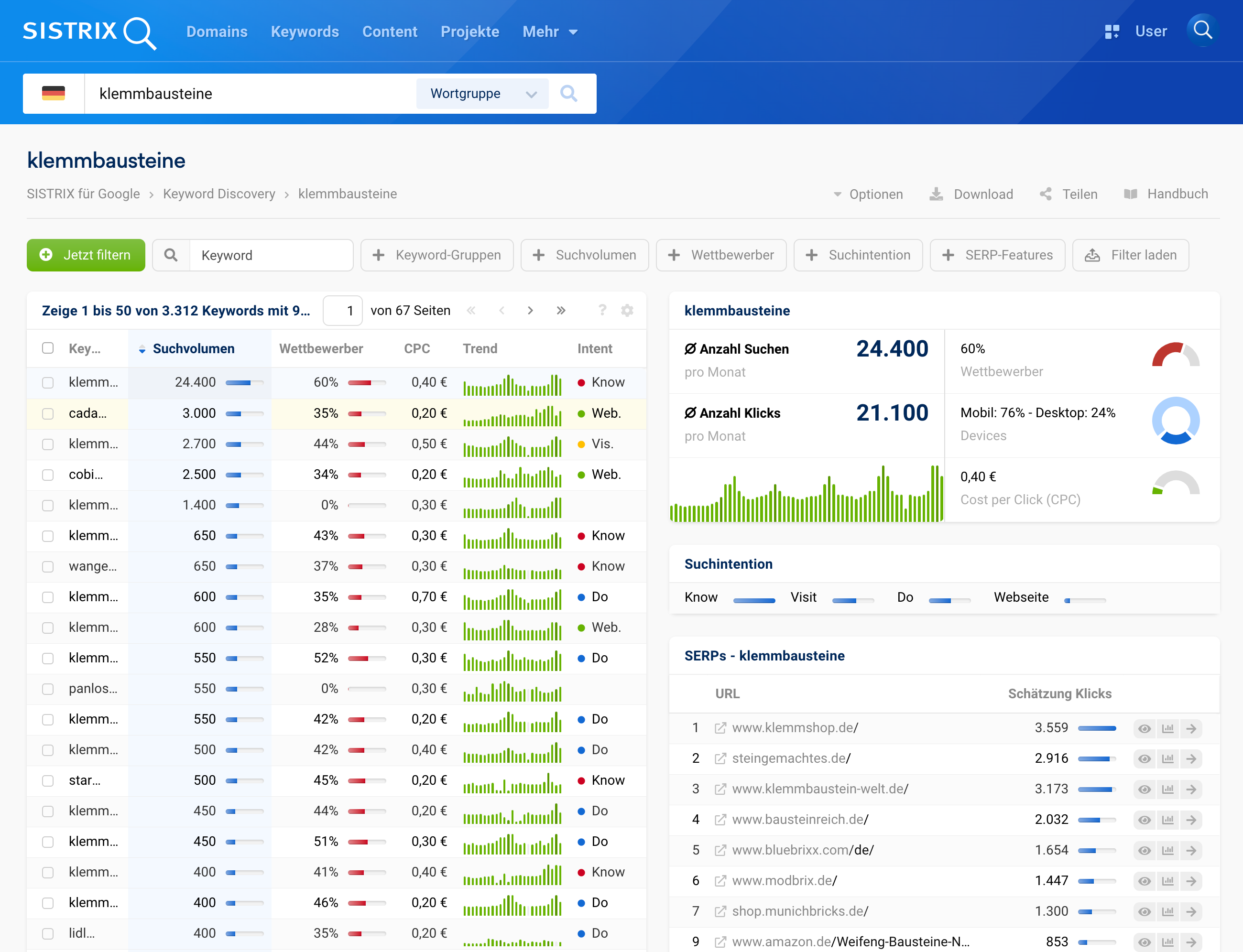 SISTRIX ist eines der bekanntesten und beliebtesten SEO-Tools aus Deutschland und seit Jahren ein fester Bestandteil im Werkzeugkasten von Agenturen, Marketing-Managern und Redaktionen. Das Tool liefert genau die Daten, die für eine fundierte Suchmaschinenoptimierung notwendig sind – zuverlässig, aktuell und übersichtlich aufbereitet.