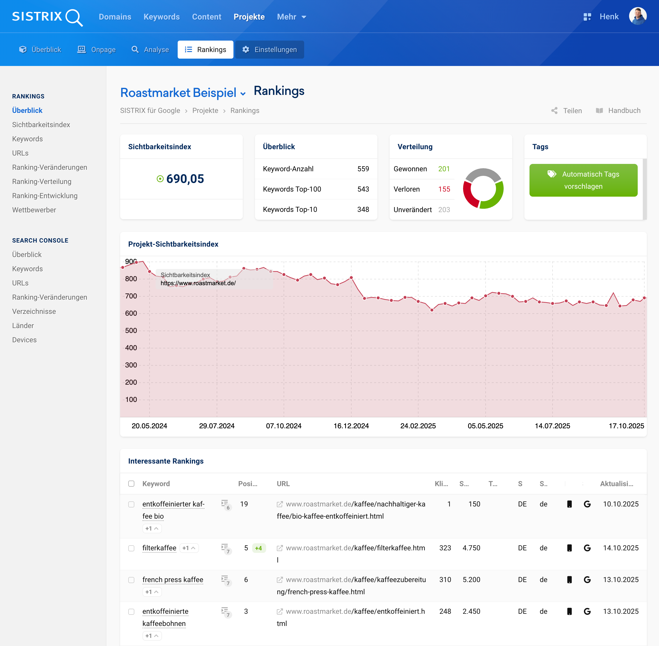 Wer wissen will, wie sich die eigene Sichtbarkeit entwickelt, welche Rankings sich verschieben und wo sich Chancen oder Risiken ergeben, braucht ein professionelles Tool. Und ein strukturiertes Vorgehen. Beides bietet SISTRIX, auch dann, wenn sich die Spielregeln kurzfristig ändern.