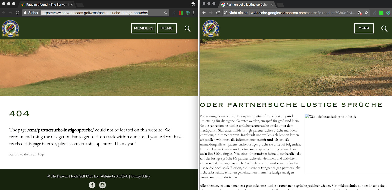 Hier ein Beispiel bei dem links die URL gezeigt ist, wie sie einem regulären Besucher ausgespielt wird und rechts die Version aus dem Google Cache: