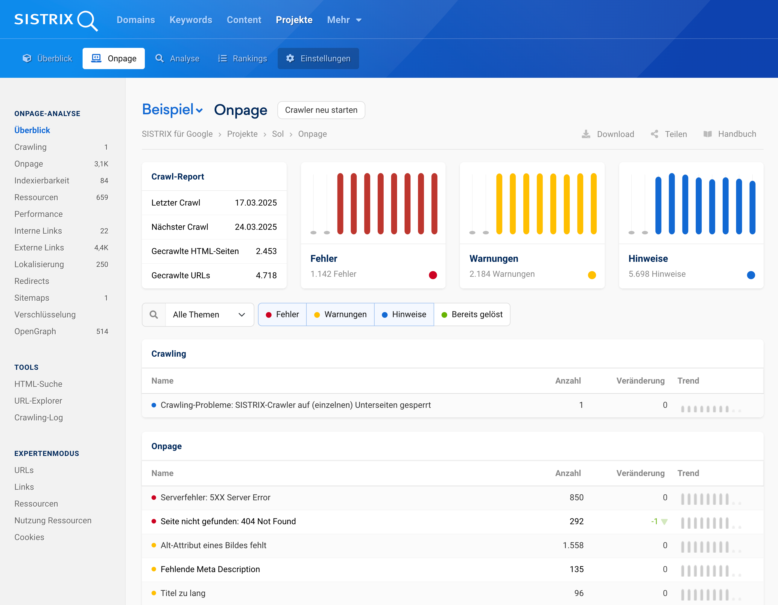 Teste SISTRIX jetzt 14 Tage kostenlos und überprüfe mit einem Onpage-Projekt, ob deine HTTPS-Umstellung fehlerfrei verlaufen ist. Analysiere Weiterleitungen, interne Links und Mixed Content – und optimiere deine Website für bessere Rankings!