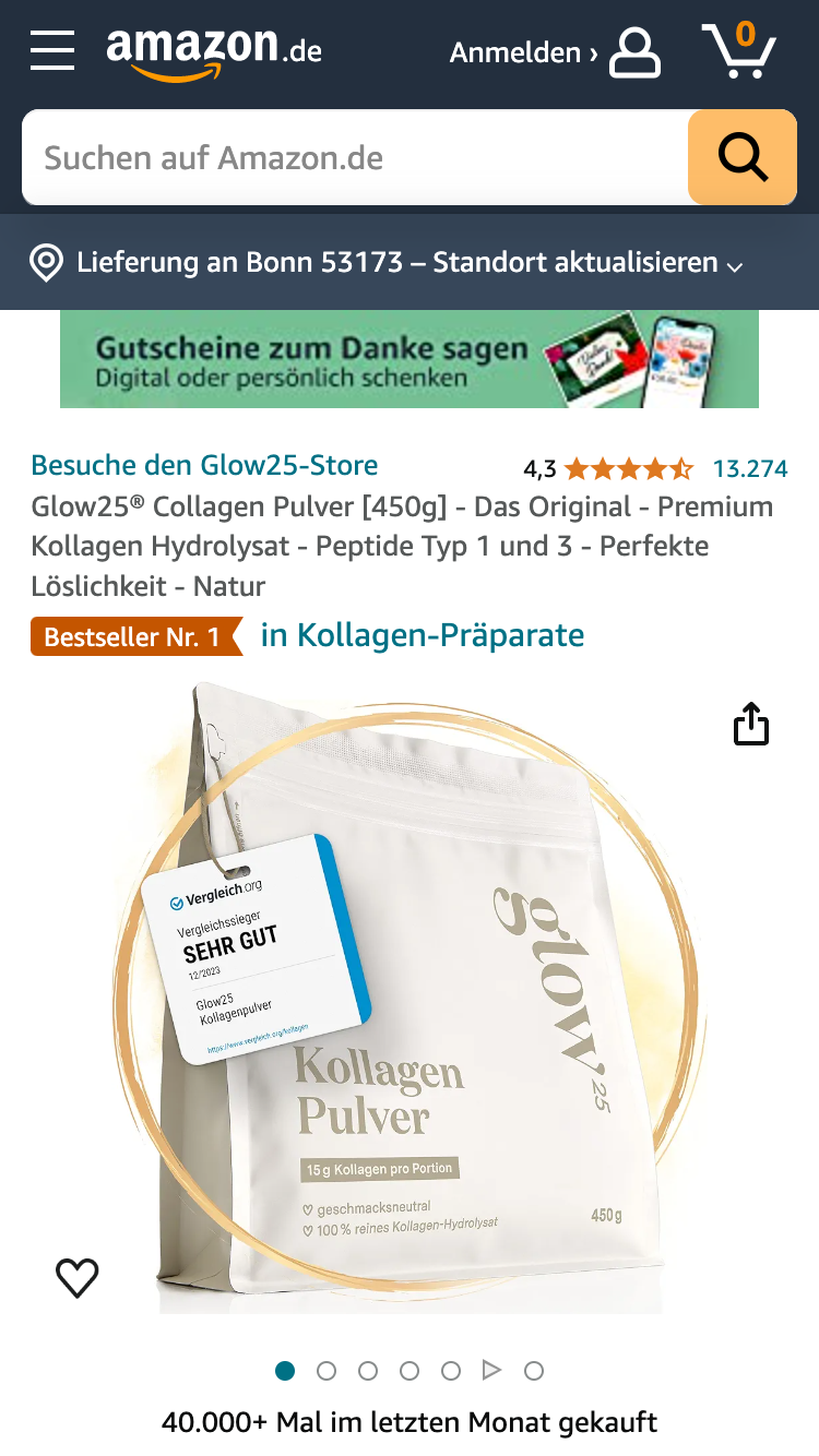 | 3 | Glow25 Collagen Pulver [450g] | Glow25 | Drogerie & Körperpflege | 49.999 |