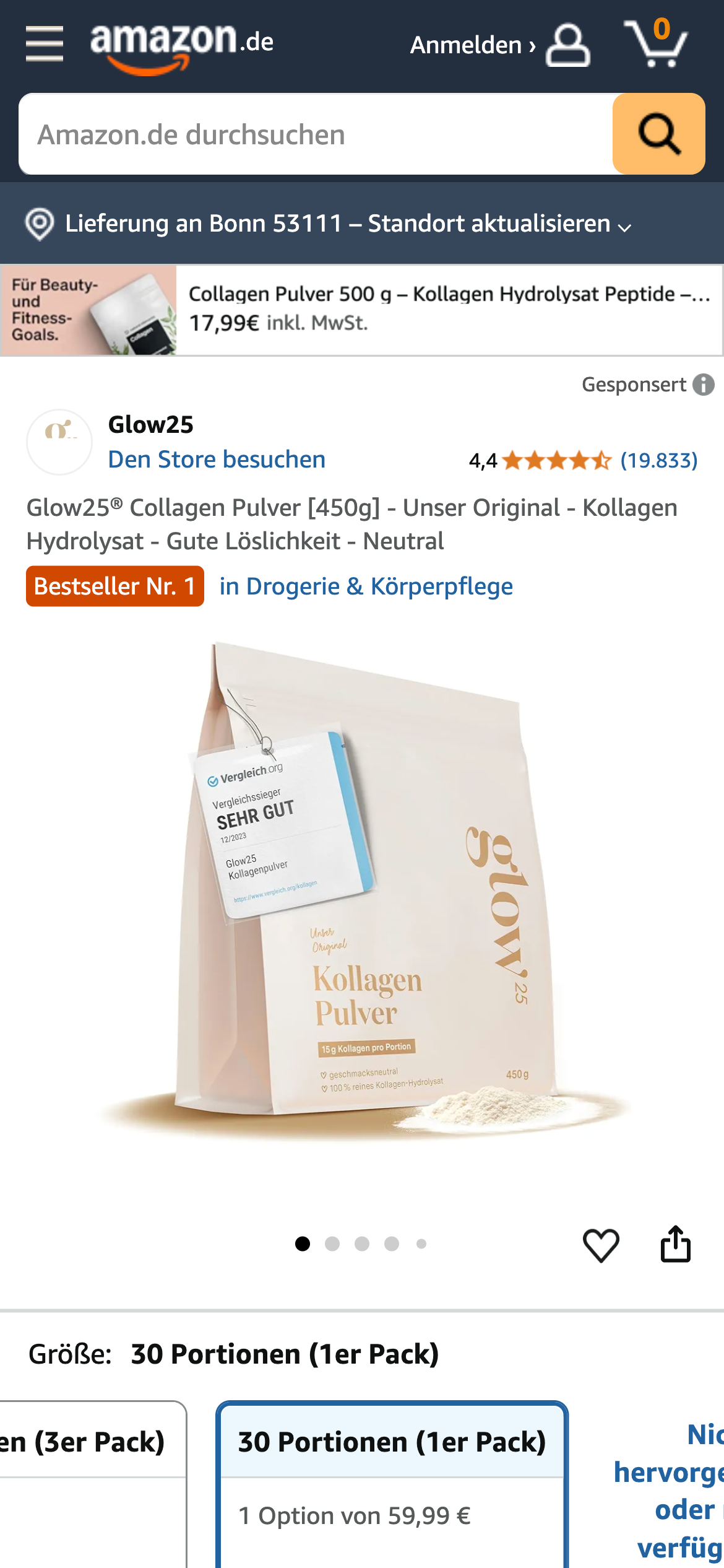 Neu dabei auf dem vierten Platz ist zudem ein “Kühl Roll-on” von Fenistil, der z.B. bei Mücken- und anderen Insektenstichen helfen soll. Er wurde im Wertungszeitraum laut unserer Daten fast 30.000 mal bestellt. Mit Collagenpulver schaffte es neben dem Dauerbrenner Glow25 nun auch die Marke Wehle Sports in die Top Ten.