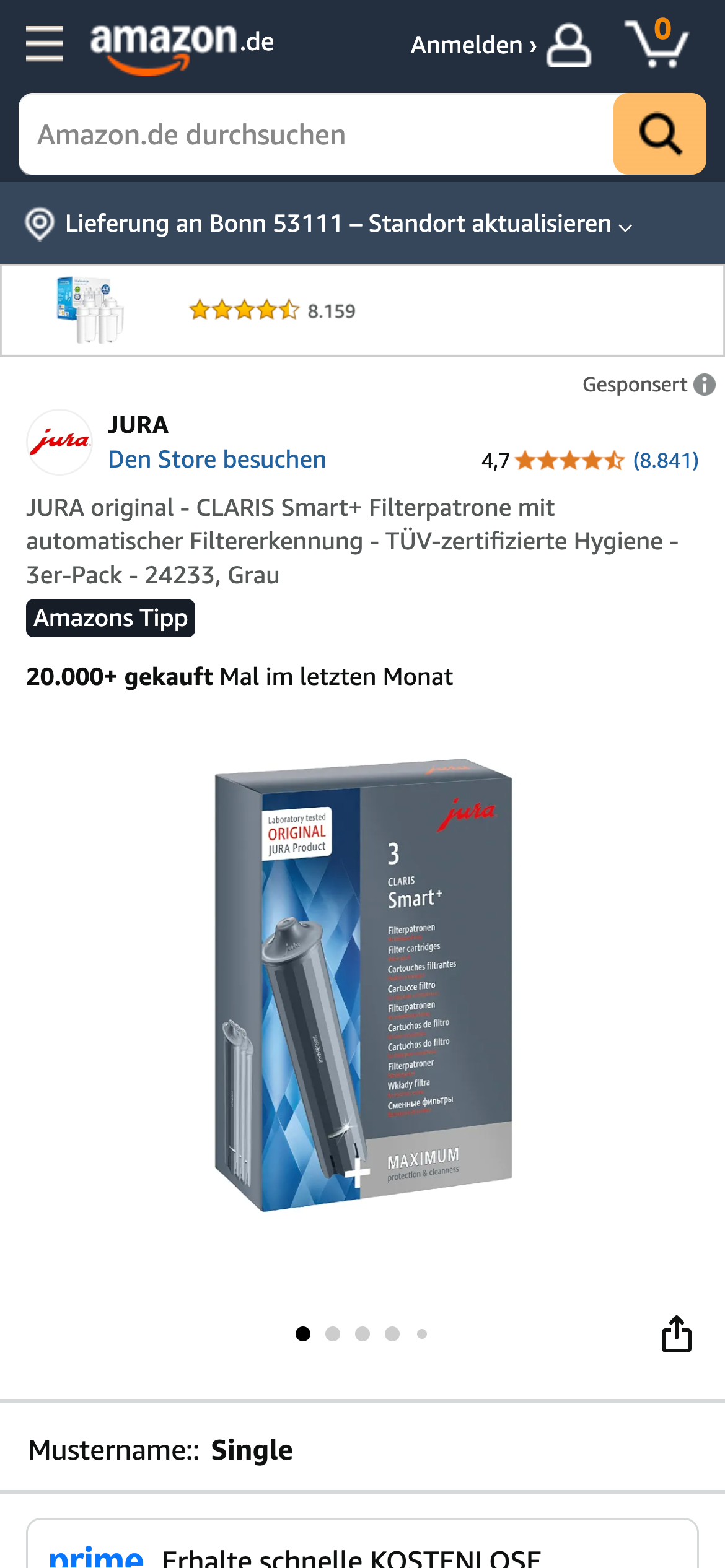 | 8 | JURA original - CLARIS Smart+ Filterpatrone mit automatischer Filtererkennung | Jura | Küche, Haushalt & Wohnen | 1.275.944 |