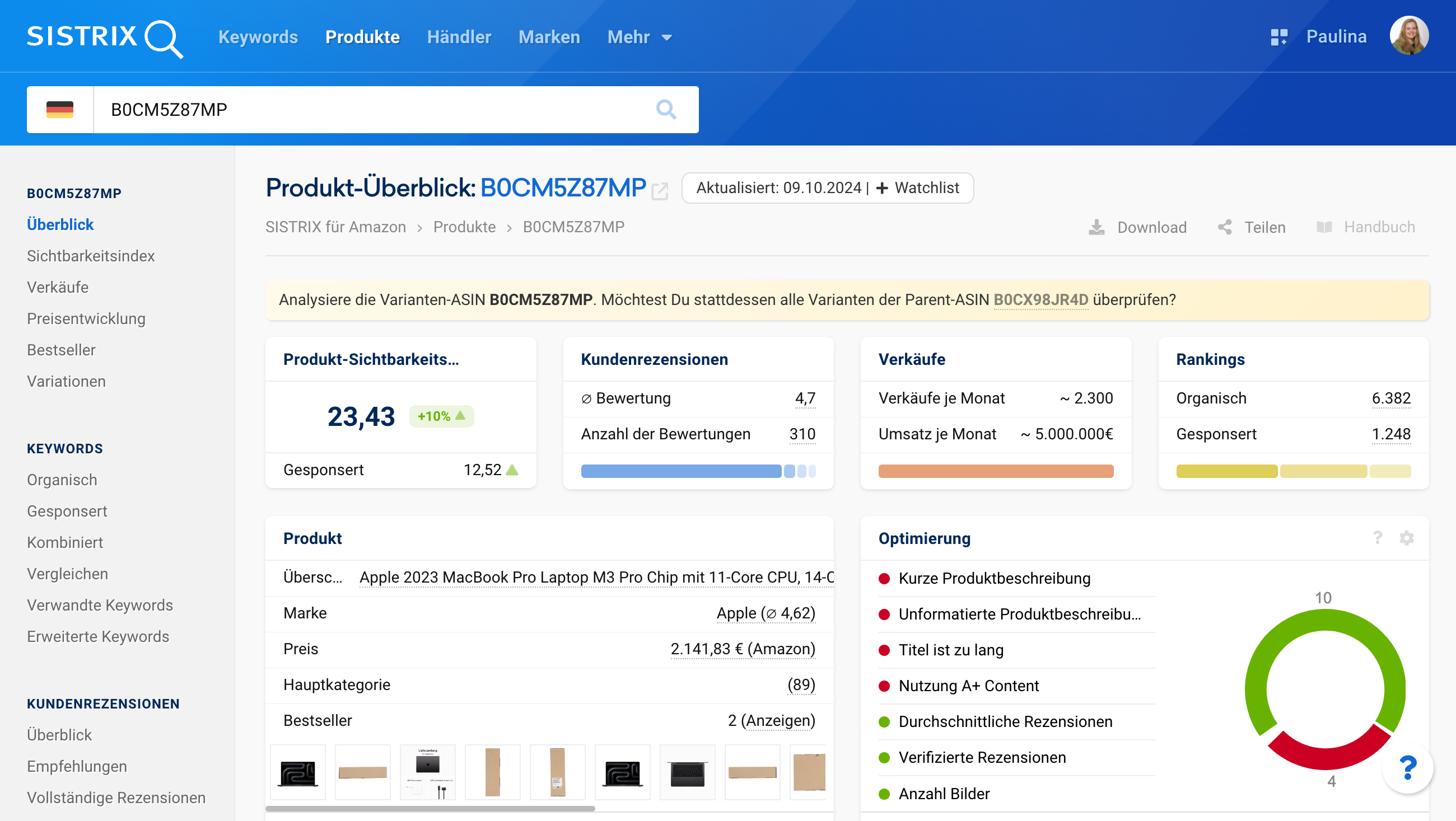 | 1 | Apple 2023 MacBook Pro Laptop, Space Schwarz | Apple | Computer & Zubehör | 5.368.974 |