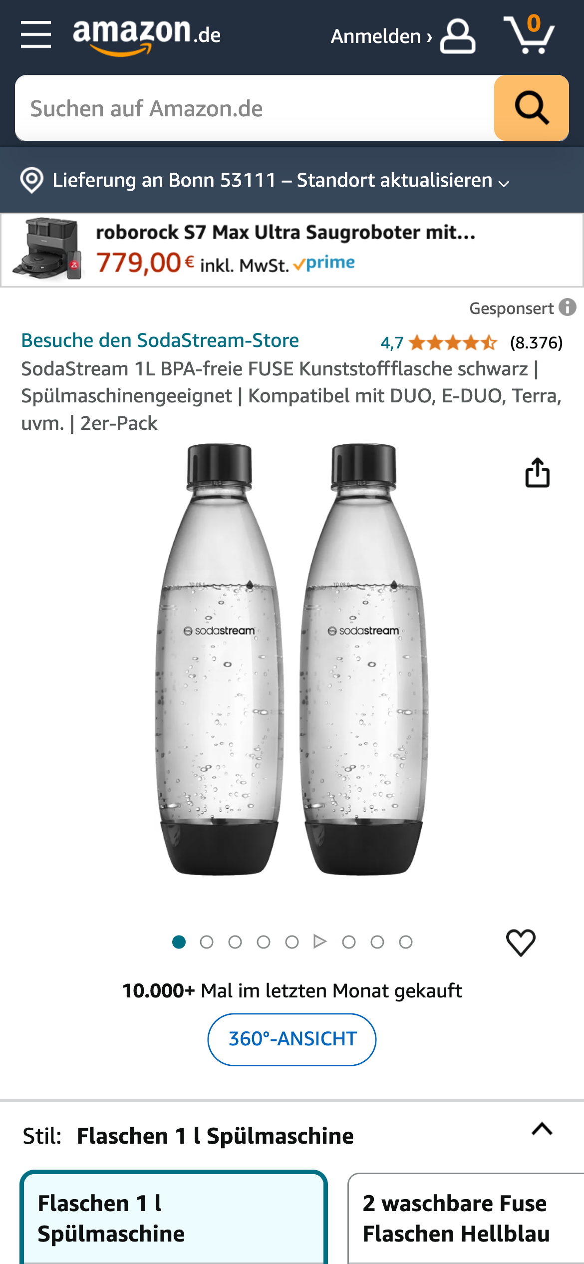 | 2 | SodaStream 1L BPA-freie Fuse Kunststoffflasche schwarz | SodaStream | Küche, Haushalt & Wohnen | 12.484 | 9.431 | 308,9 |