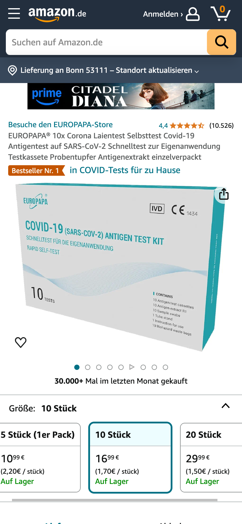 | 2 | EUROPAPA® 10x Corona Laientest Selbsttest Covid-19 | EUROPAPA | Drogerie & Körperpflege | 34.147 | 5.680 | 20,0 |