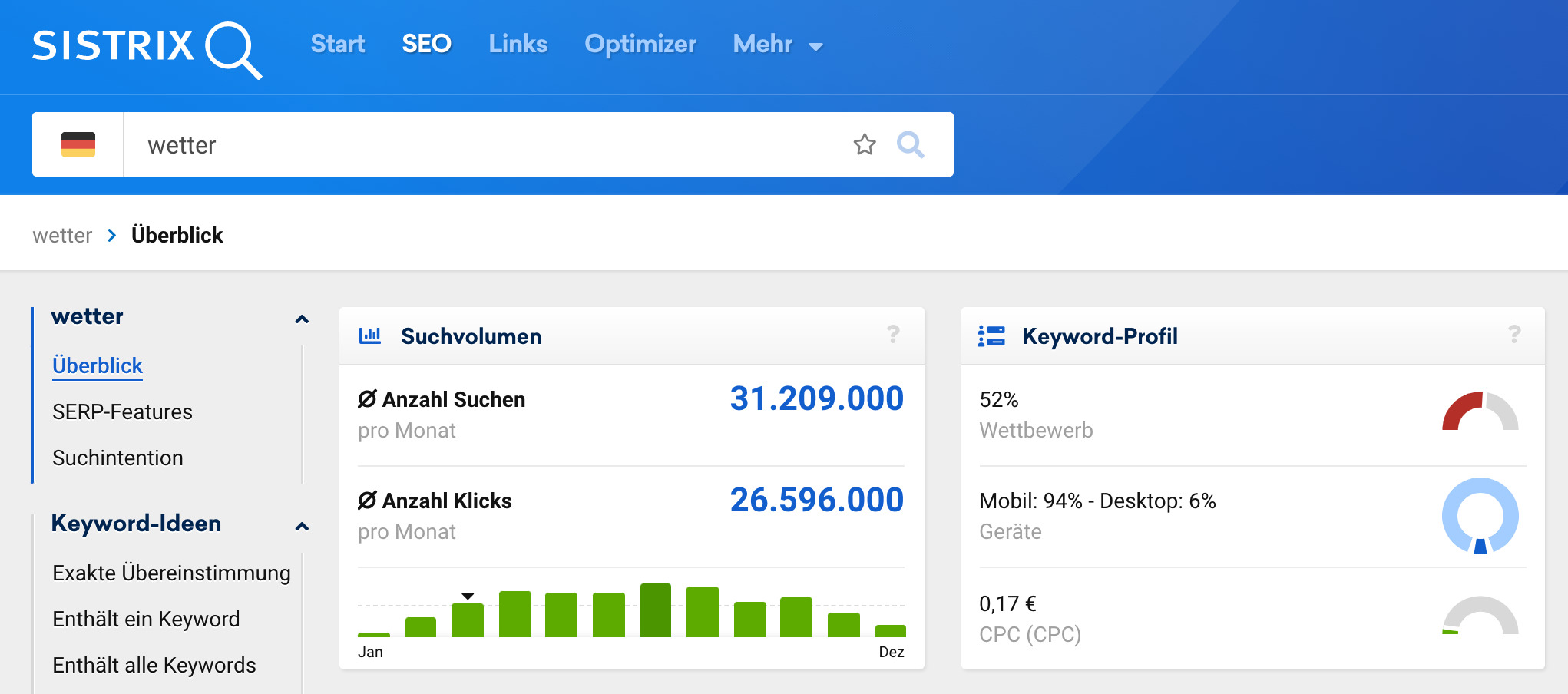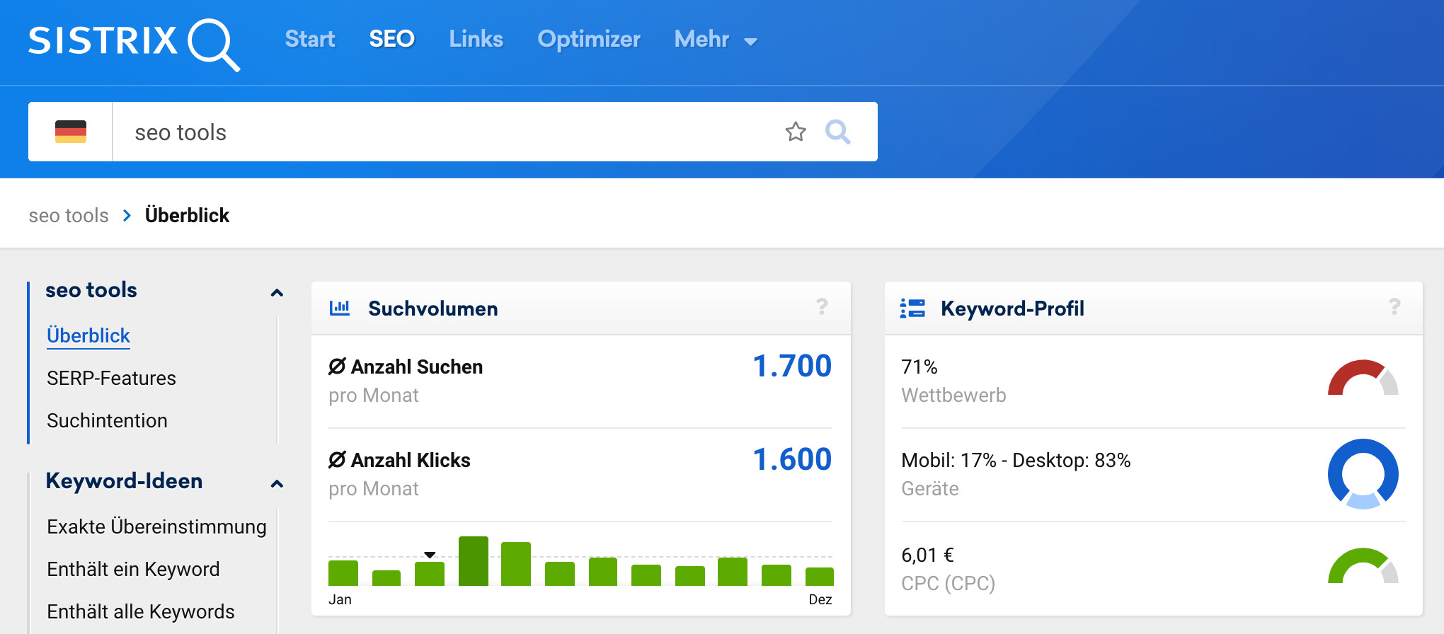 - Entscheidest du auf Grundlage der richtigen Zahlen? Die meisten etablierten Tools und Werkzeuge liefern weiterhin Desktop-Daten: so werden Desktop-Rankings gemessen und Onpage-Crawler geben sich als Desktop aus. Das entspricht nicht mehr der Realität. Wir haben bei SISTRIX bereits seit Jahren einen Mobile First-Ansatz: sofern nicht explizit anders ausgewählt, siehst du bei uns Mobile-Daten.