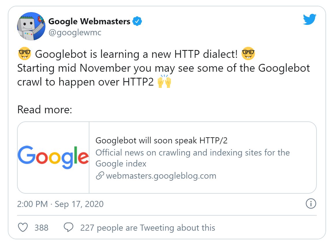 Google hat bereits klargestellt, dass das Crawling via HTTP/2 keinen Rankingvorteil verspricht. Nur, falls sich jemand fragen sollte …