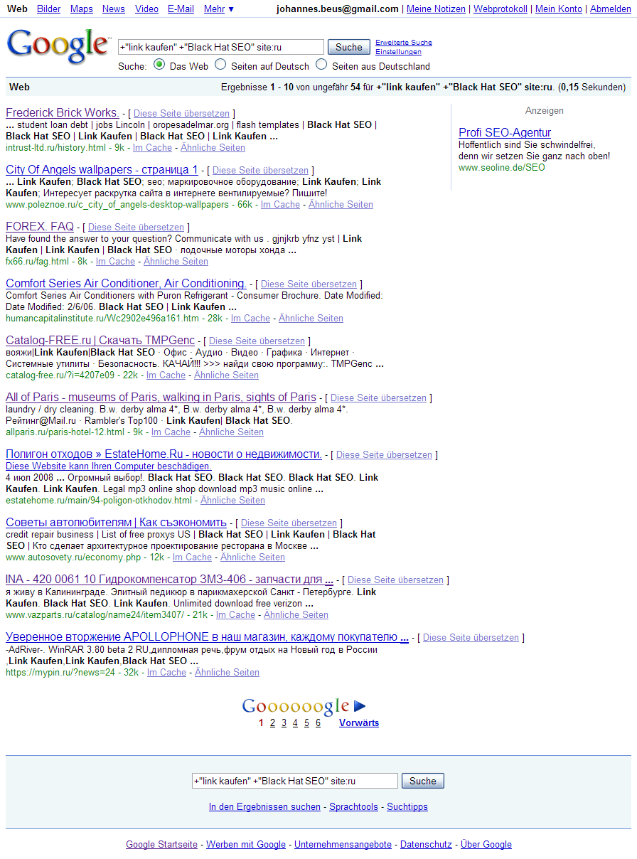 Ich bin eben noch mal zufälligerweise über die Seite gestolpert und habe gesehen, dass der Betreiber der Seite seinen Ankündigungen hat Taten folgen lassen. Eine Reihe von Domains werden neuerdings von russischen Seiten verlinkt und ich kann nach Rücksprache mit einigen der Betreibern versichern, dass diese Verlinkungen nicht selber initiiert sind. Recht schön kann man das beispielsweise an diesem Query sehen: