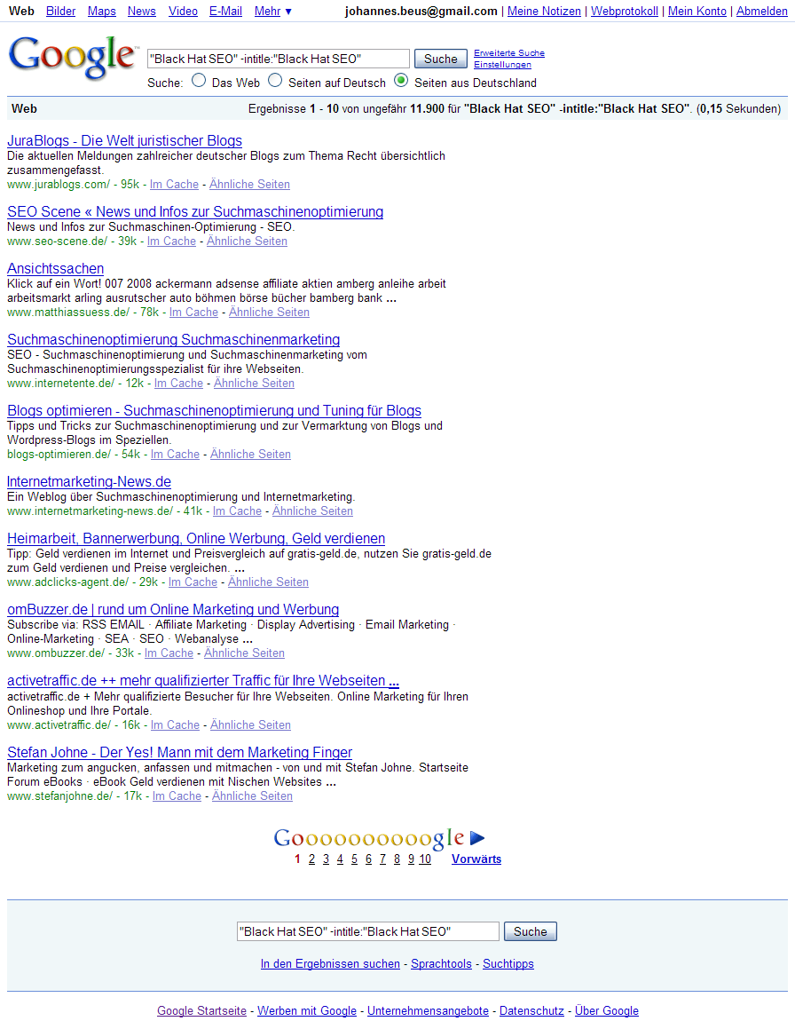 Dass die ganze Geschichte auch an Google nicht spurlos vorbei geht, kann man an Suchabfragen wie dieser (Screenshot) gut sehen. Die Seiten, die verlinkt wurden, sind dort jetzt gesammelt zu finden. Interessant wird jetzt zu beobachten, wie die Beteiligen mit der Situation umgehen. Insbesondere Google ist jetzt in Zugzwang und ich bin gespannt, ob und wie reagiert wird.