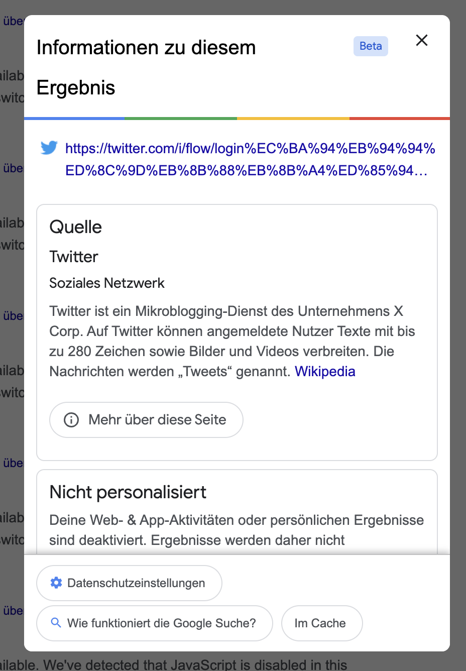 Geht man etwas tiefer in die Analyse, wird das Problem offensichtlich – Twitter leitet auch den Googlebot auf den Login-Prozess weiter: