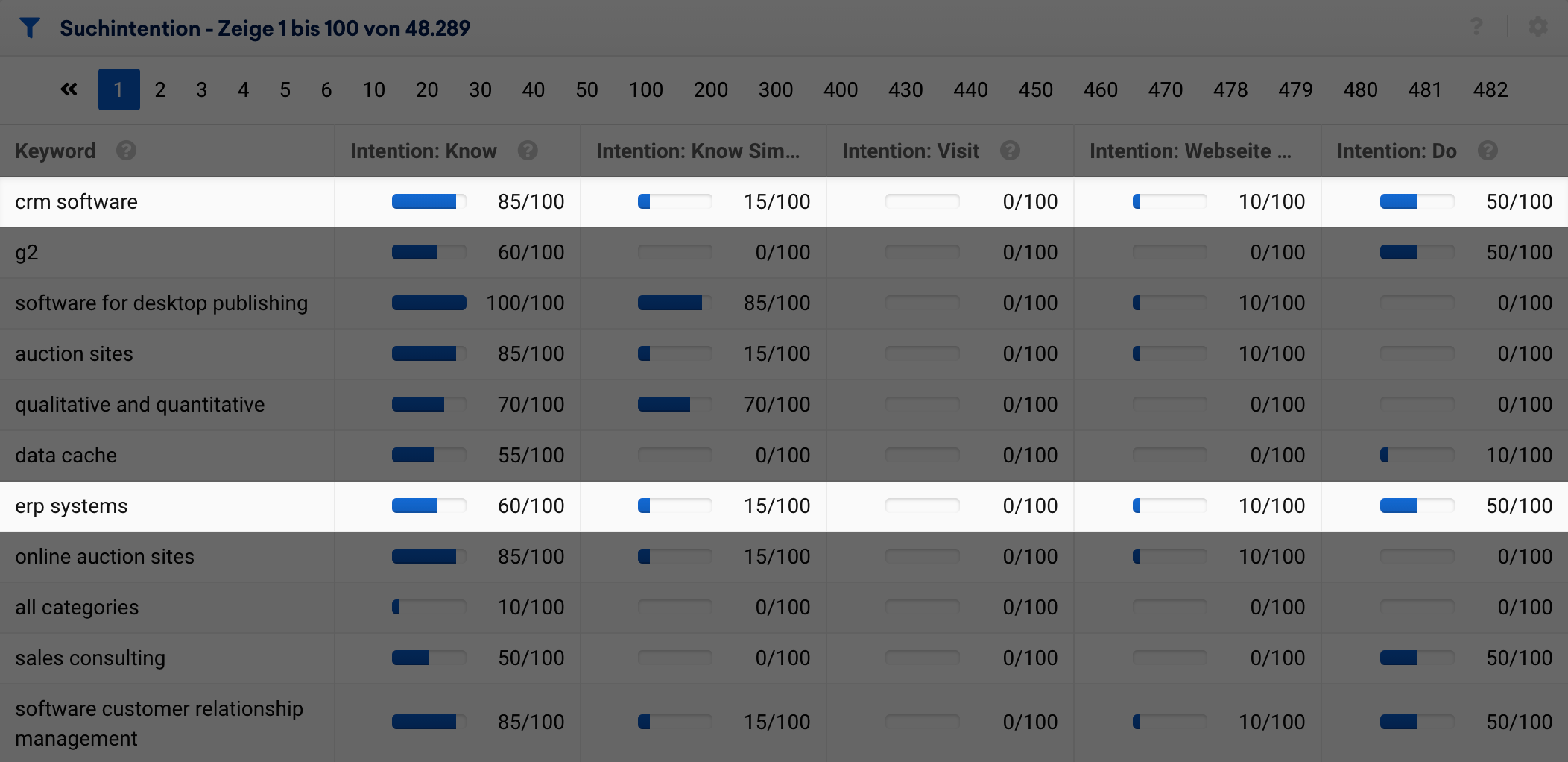 Bei einem Blick auf unsere Keywords in Sistrix wird schnell deutlich dass wir SERP Features besonders für Keywords mit einem “Know Intent” bekommen. Der Grund liegt auf der Hand: Google möchte Nutzerintentionen so gut wie möglich erfüllen und zeigt entsprechende SERP Features an.