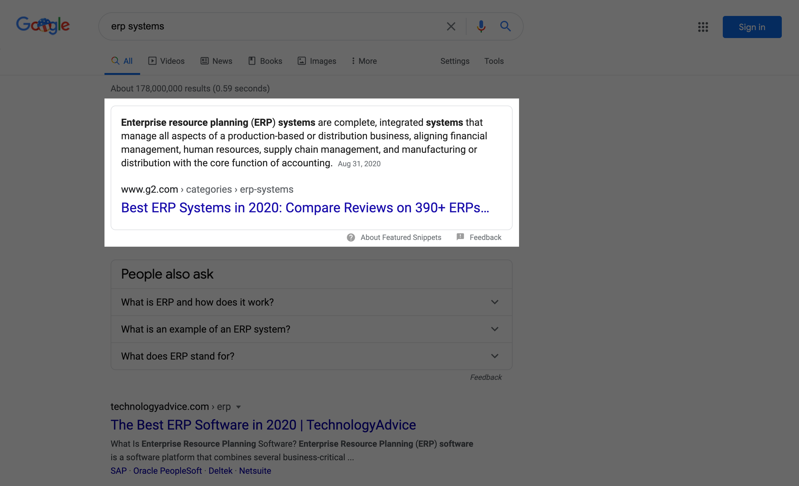 Damit konnten wir kürzlich zum Beispiel die Pole Position für das Keyword “ERP Systems” gewinnen.