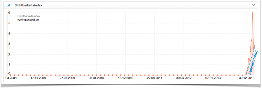 Im Oktober haben wir Euch gebeten, den Sichtbarkeitsindex der neu gestarteten Nachrichtenplattform huffingtonpost.de für den 30.12.2013 zu prognostizieren. Jetzt steht das Ergebnis fest. Die Website huffingtonpost.de beendet das Jahr mit 2,812 Punkten im Sichtbarkeitsindex.