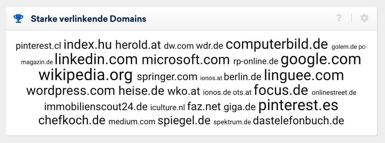 Stichprobe verlinkende Domains – der zweite Blick geht auf die stärksten der verlinkenden Domains. Hier sehe ich schnell, ob das bekannte und vertrauenswürdige Domains aus dem jeweiligen Markt sind oder ob ich nur Domains finde, die ich vorher noch nie gesehen habe. (20 Sekunden)