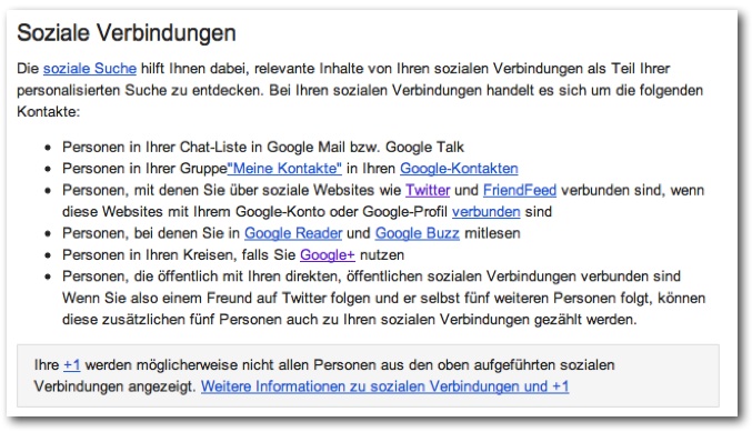 Google selbst unterscheidet hier in öffentliche Verbindungen (z.B. Twitter) und private Verbindungen (z.B. Google Chat).