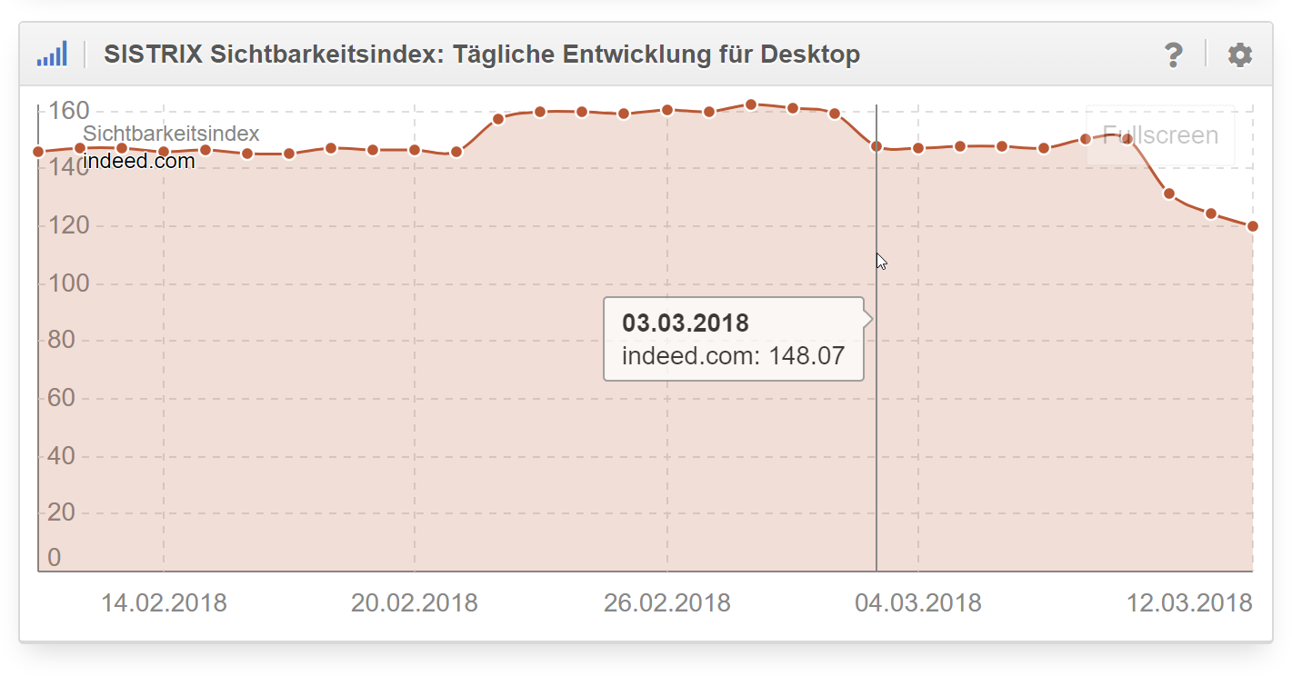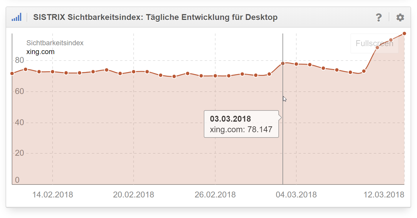 Spannender für die Identifikation des Updates und bei den meistens Domains, die ich analysiert habe deutlich zu sehen, ist allerdings der Verlauf vom 02. auf den 03.03: hier ist bereits ein paar Tage vor dem eigentlichen Update ein kleiner Verlust zu erkennen.