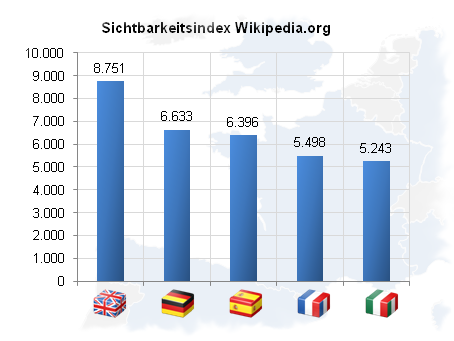 Den Sichtbarkeitsindex gibt es ab sofort nicht nur für Deutschland, sondern auch für die vier neuen Länder. Der Indexwert ist dabei so aufgebaut, dass die Werte zwischen den Ländern vergleichbar sind: ein Wert von 10 entspricht also in allen Ländern der gleichen Sichtbarkeit in den Suchergebnissen. Recht gut kann man das beispielsweise bei Wikipedia.org sehen: