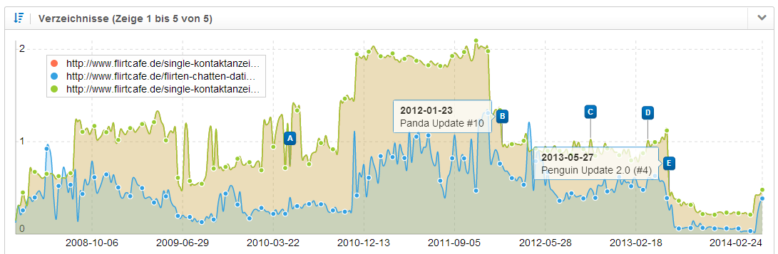 Scheinbar in der Vergangenheit von den algorithmischen Penalties Panda und Penguin bestraft, konnten sich die stärksten Verzeichnisse der Domain wieder erholen.