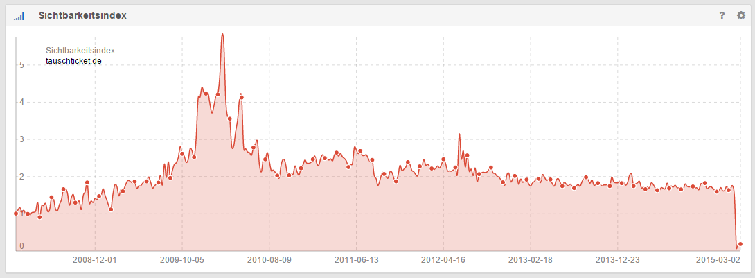 Google gibt bei einer Site-Abfrage zur Domain tauschticket.de keine Ergebnisse aus. Dies bedeutet, dass sich keine Inhalte der Domain im Google-Index befinden bzw. diese nicht angezeigt werden. Dies hat natürlich auch negative Auswirkungen auf den Sichtbarkeitsindex, denn Inhalte der Domain tauschticket.de können derzeit gar nicht über Google gefunden werden.