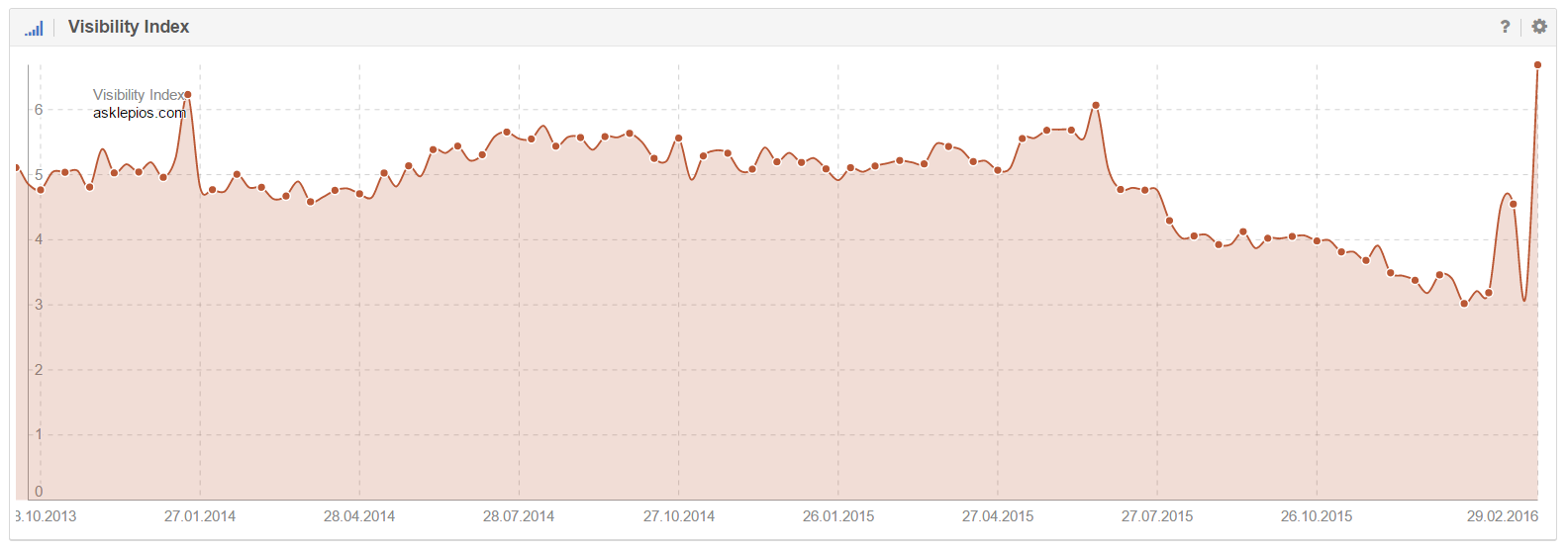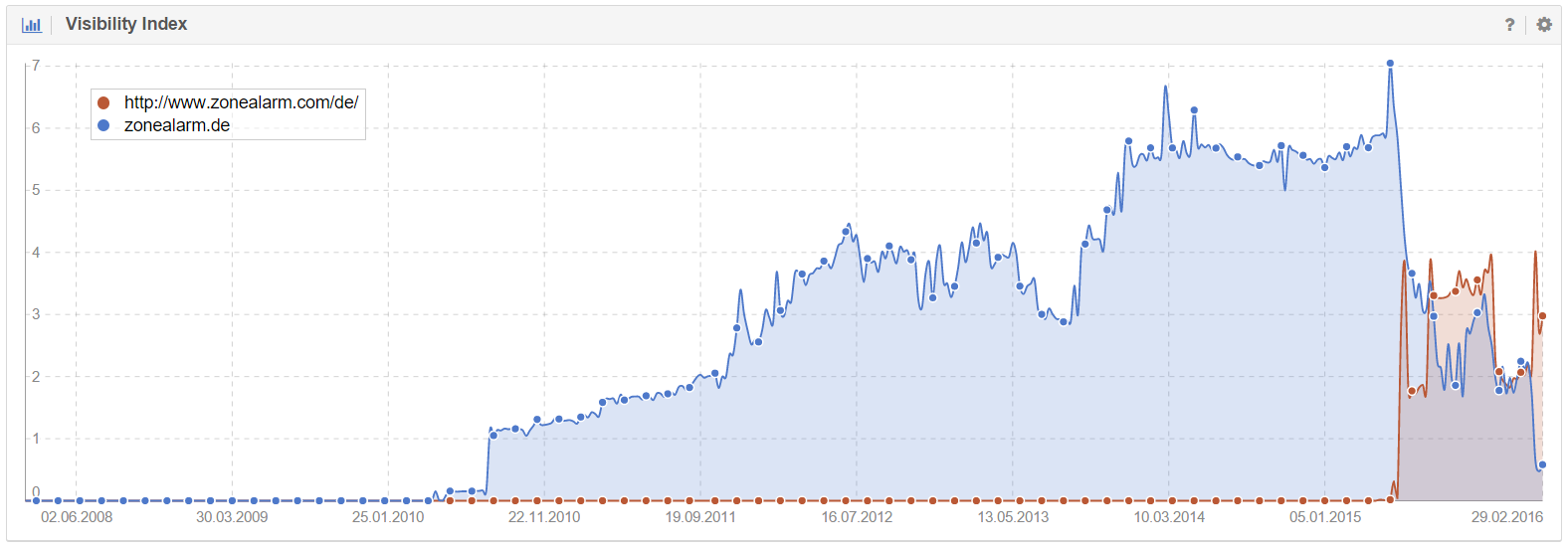 Vor gut sechs Wochen musste man noch einen Verlust von mehr als zwei Drittel in der Sichtbarkeit hinnehmen. Dieser Umstand ist vermutlich auf eine Umstellung bei den rankenden URLs und deren Position in der Google-Suche zurückzuführen.