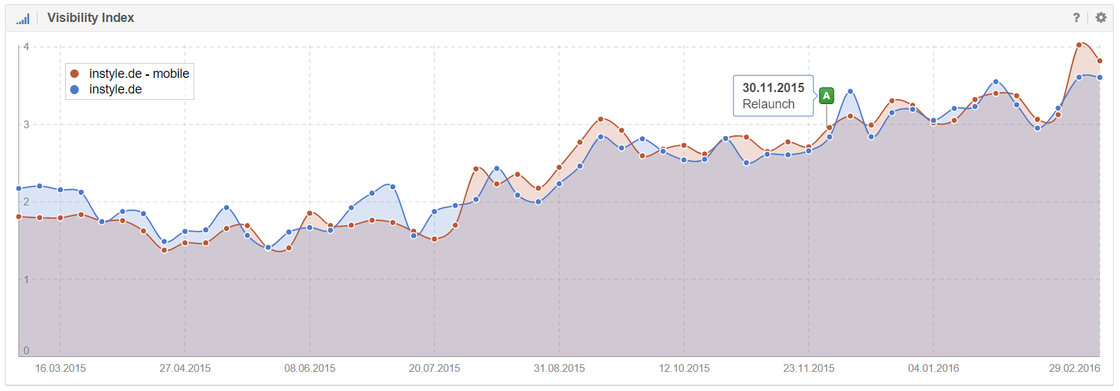 So verkündete es Burda Media. Der Desktop, als auch der Mobile-Sichtbarkeit, hat dies keinen Abbruch getan. In den vergangenen drei Monaten konnte das Portal knapp einen Punkt im Sichtbarkeitsindex zulegen.