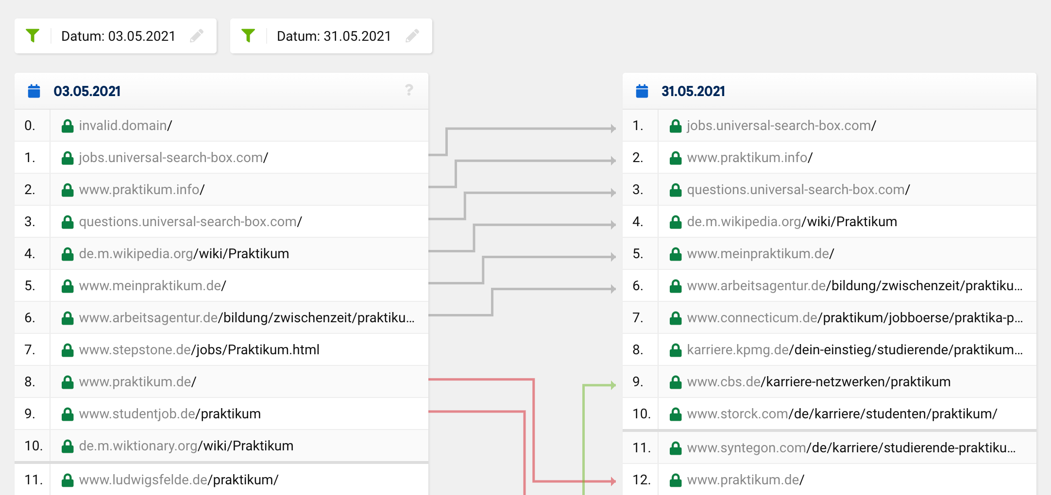 Hier gab es allerdings keinen Relaunch und auf den ersten Blick auch keine größeren Veränderungen der Seite selbst. Die Anzahl der verfügbaren Stellenanzeigen wurde im Vergleich zum Oktober 2020 zwar um etwa 33% gesteigert, allerdings muss man den Grund für den Sichbarkeitsanstieg wohl woanders suchen.