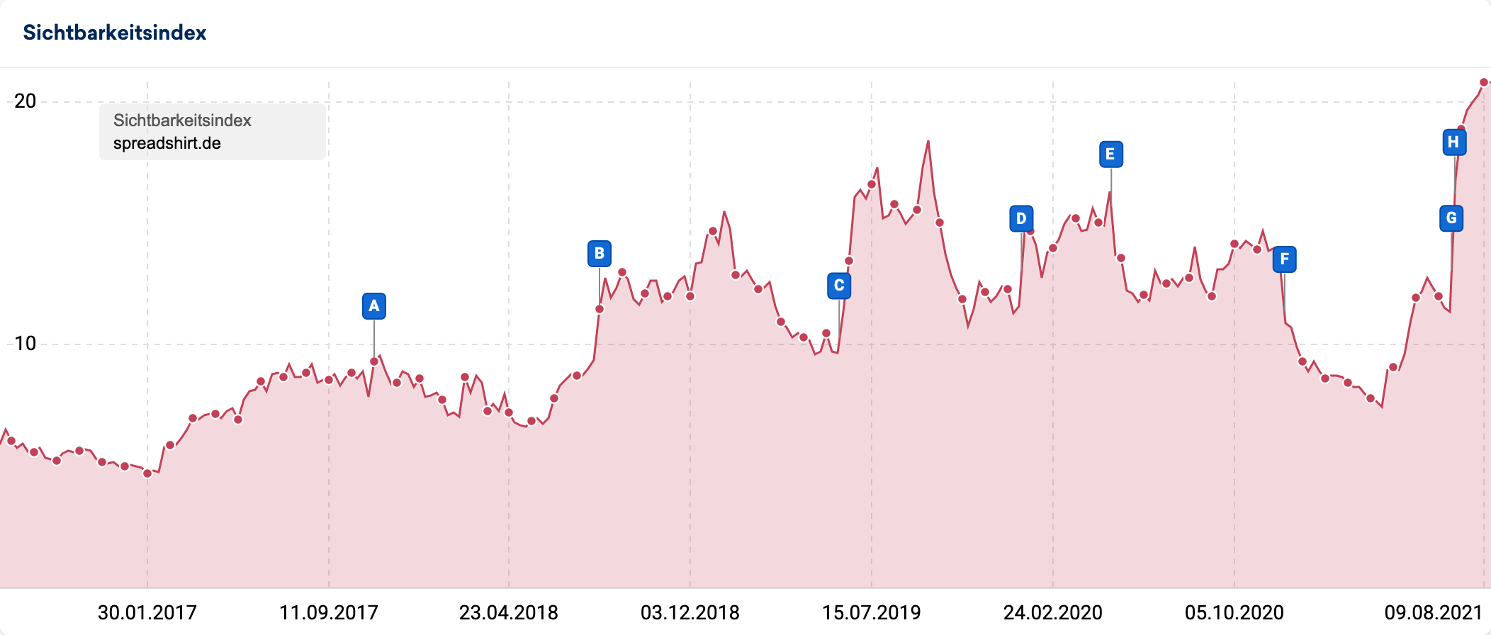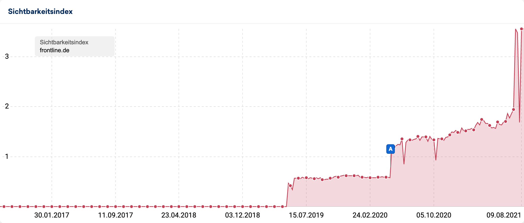 Der Shop unter frontline.de ist für mich die Überraschung des Jahres. Mitte 2019 gestartet, konnte sich der Shop Stück für Stück verbessern und hat nun die Marke von 3 Sichtbarkeitspunkten durchbrochen.