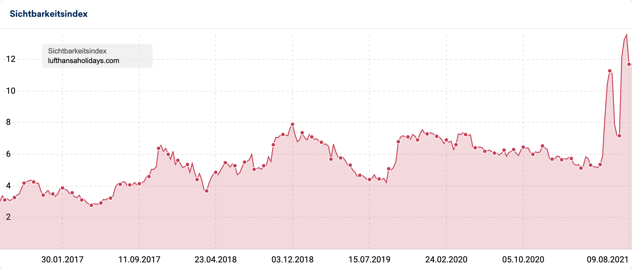 Die Reisebuchungsplattform unter lufthansaholidays.com, die von der HLX Touristik GmbH aus Baden-Baden betrieben wird, konnte im Juli ihre Sichtbarkeits gut verdoppeln.