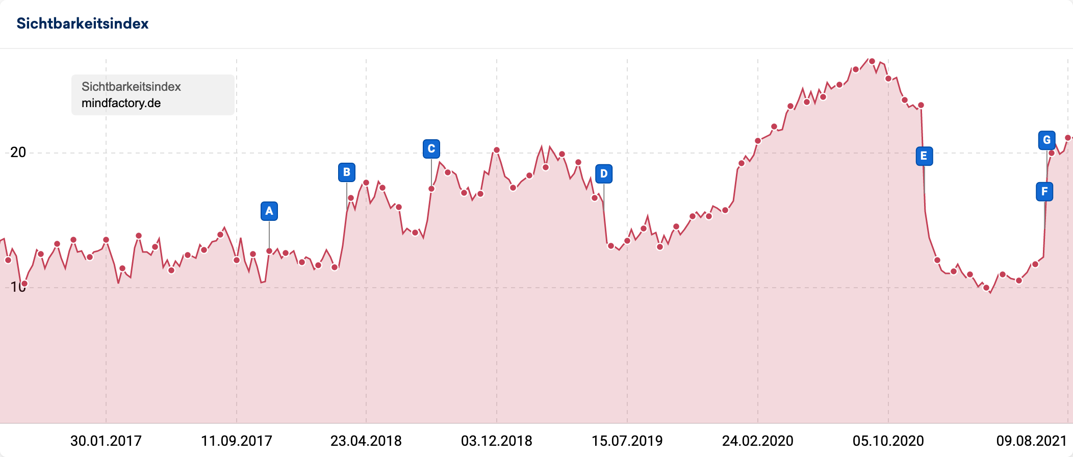 Am Ende der Liste der Gewinner des Juli habe ich euch eine ganze Reihe von Domains zusammegestellt, die beim Juli 2020 Core-Update gewonnen haben, aber eine bewegte Vergangenheit in Sachen Core-Updates haben.