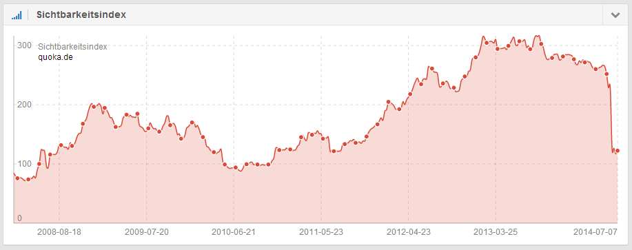 Die Domain quoka.de, welche seinen Nutzern kostenlose Kleinanzeigen ermöglicht, verlor fast die Hälfte ihrer Sichtbarkeit.