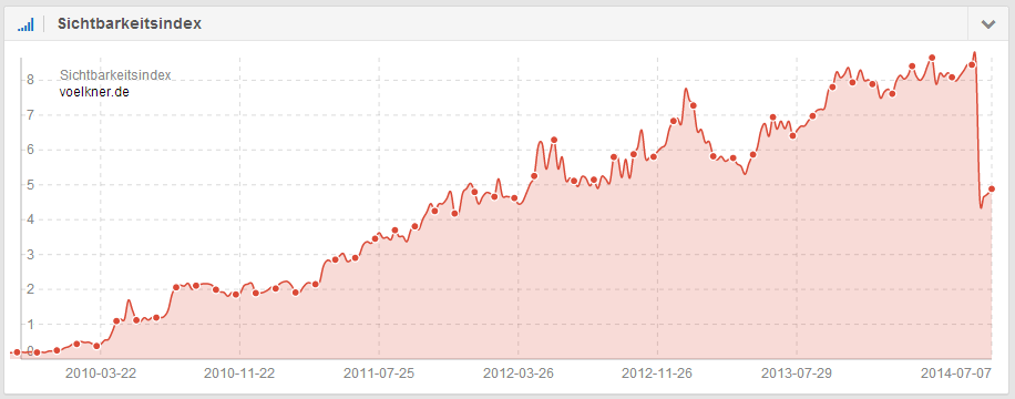 Die Domain voelkner.de, welche nach eigenen Angaben zu den Top-Adressen für den preiswerten, schnellen und problemlosen Einkauf von Elektronikartikeln im Internet gehört, verlor fast 45% im SISTRIX Sichtbarkeitsindex. Der seit Jahren anhaltende Aufwärtstrend ist damit (vorerst) gestoppt.